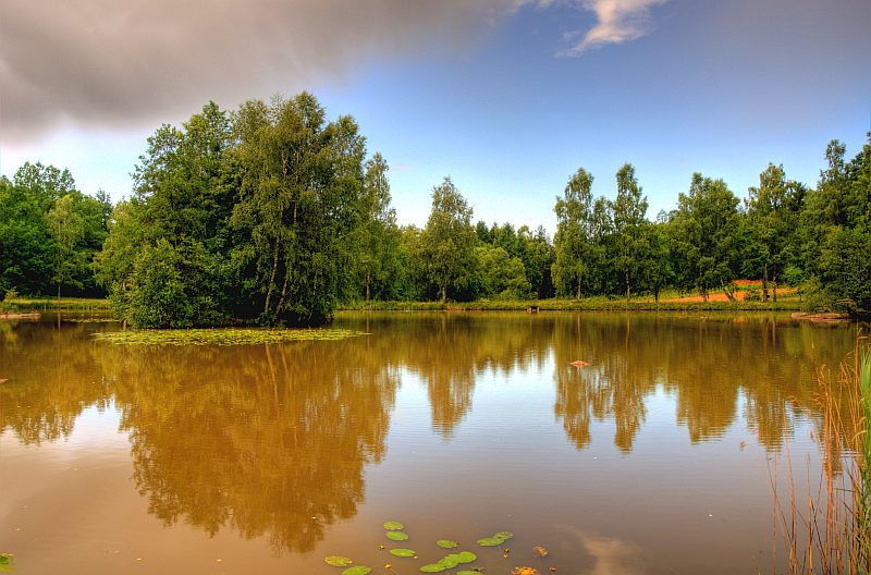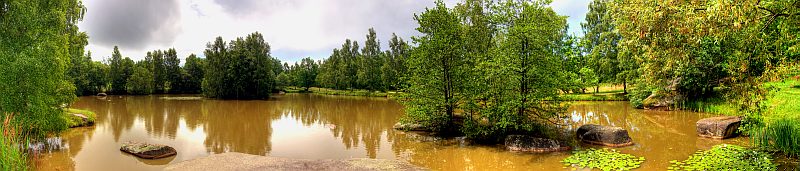 Panoramabild des Teiches nahe dem Infocenter und Aussichtsturm. Hierher oder ins Bild klicken für eine größere Darstellung.