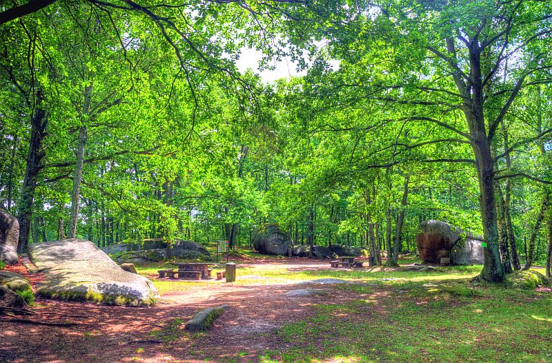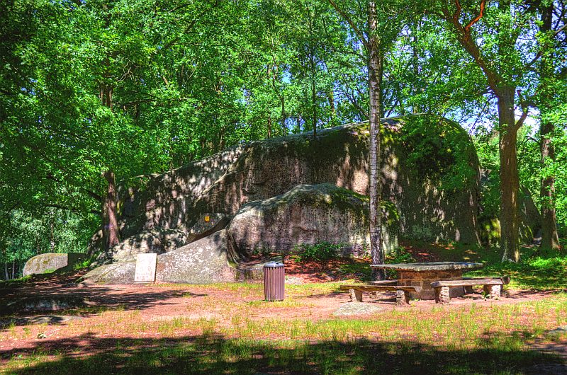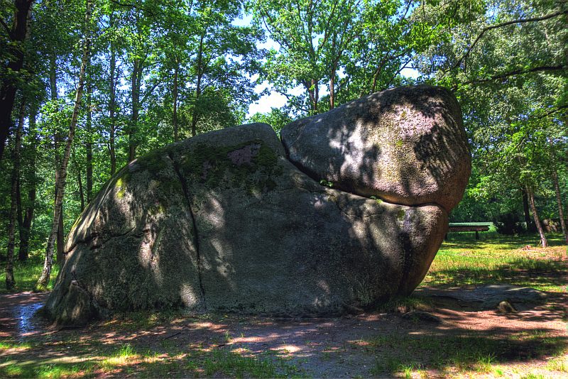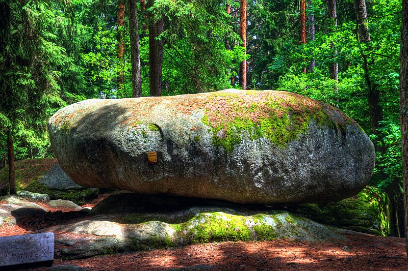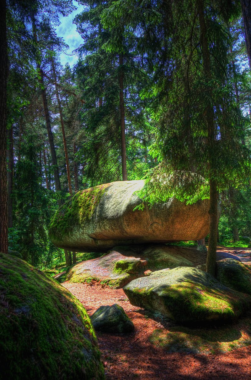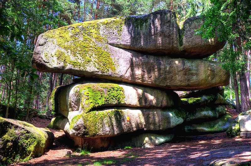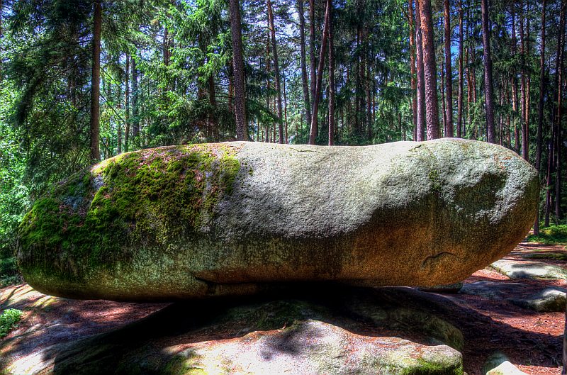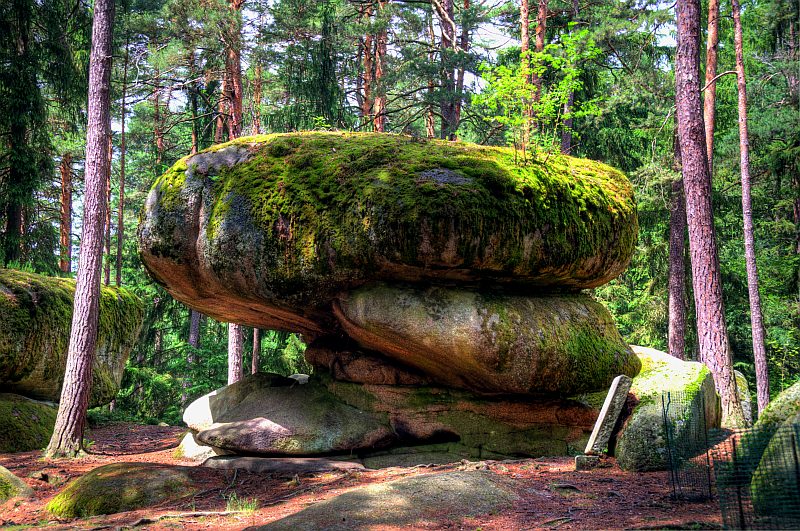 Mitten im Wald trifft man auf riesige bizarre Steinblöcke.