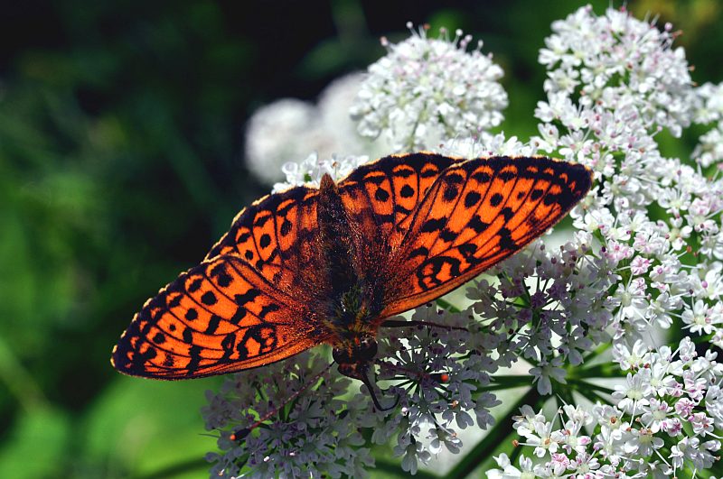 Perlmuttfalter (Argynnis Aglajae) auf Wiesenkerbel (Anthriscus sylvestris)