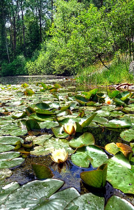 Die Mondteiche, jetzt wunderschön bewachsene Relikte kleiner Granitsteinbrüche.