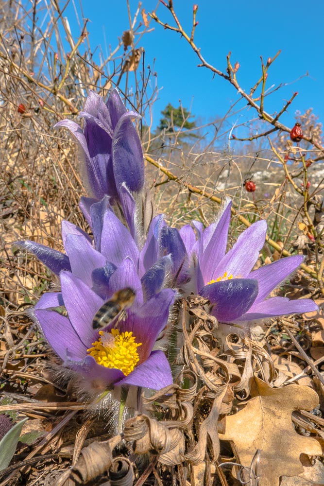 First greater pasqueflowers (pulsatilla grandis)