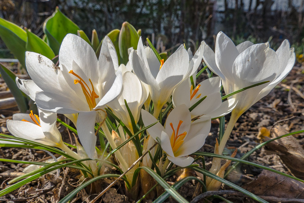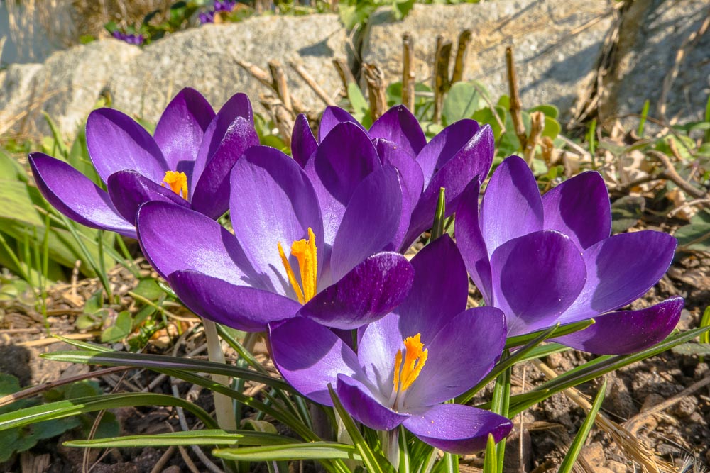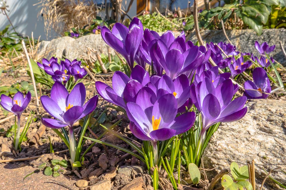 Early flowers in the garden too: garden crocus in different colors ...