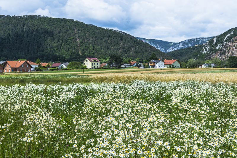 Auf den Feldern blühen jetzt Unmengen an wilden Kamillen.