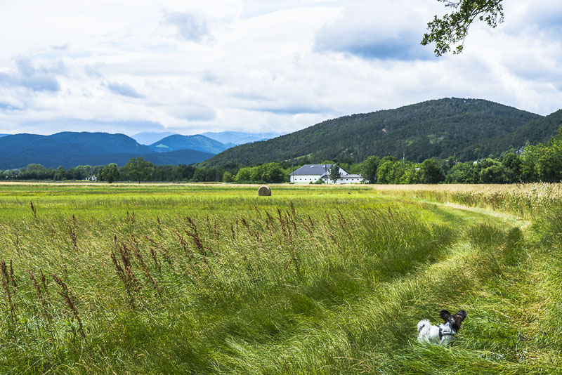 27.8.: In der Früh hat es noch geregnet, zu Mittag reißt es auf. Kurzer Spaziergang mit Lucy zum Frauenbach.