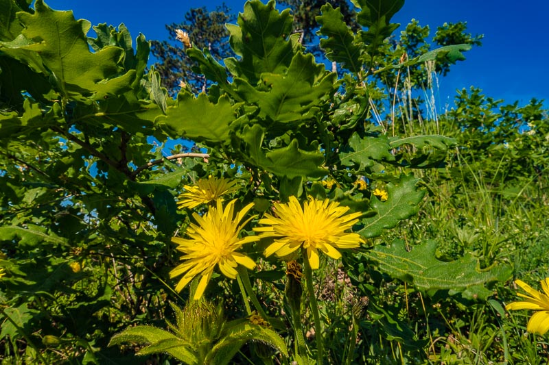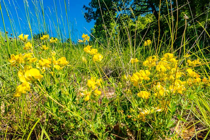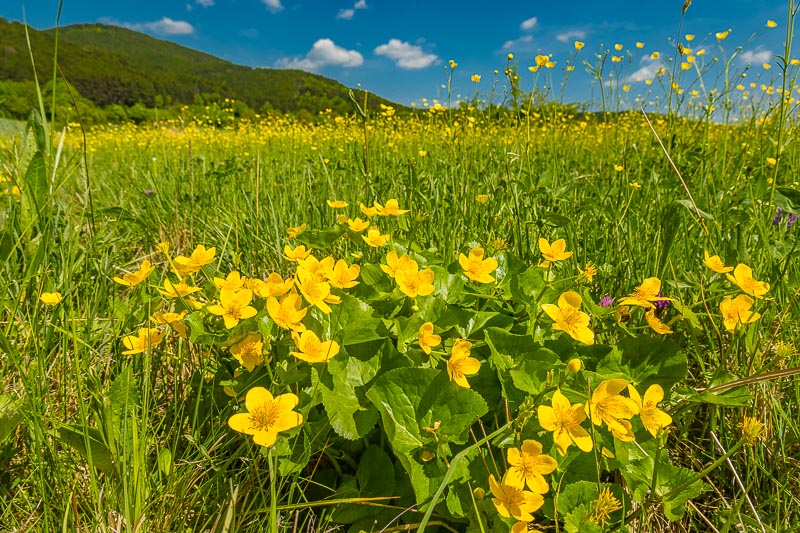 In between, along a narrow ditch, some king cups (Caltha palustris)