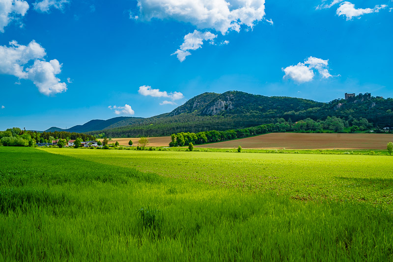 Besides the beck, the view goes to Winzendorf´s district of Emmerberg and to the ruin Emmerberg.