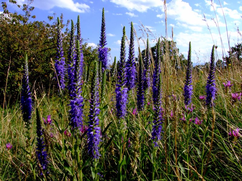 On that place where the tiny iris flowrish in spring, now there are lots of Spiked Speedwell (Veronica spicata)
