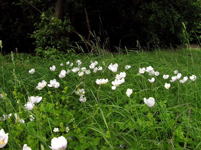 Big Wood anemones (Anemone sylvestris) at the outskirts of Rabenwald