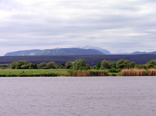 A nearby pond resulting from clay quarry, with Schneeberg behind Hohe Wand