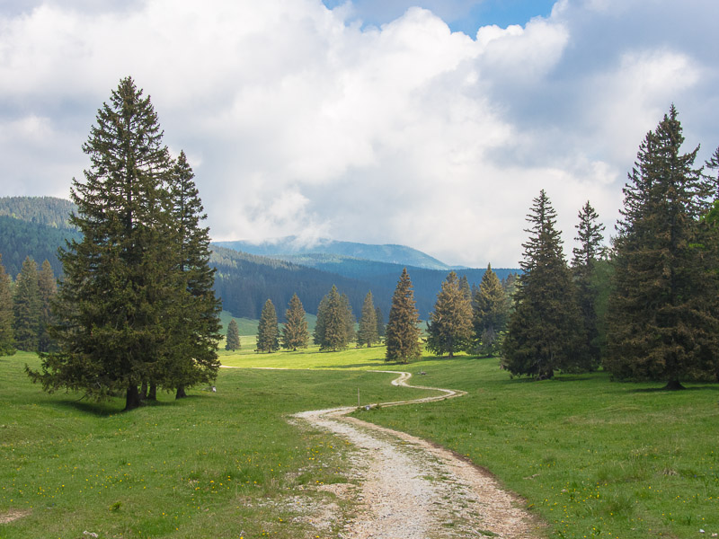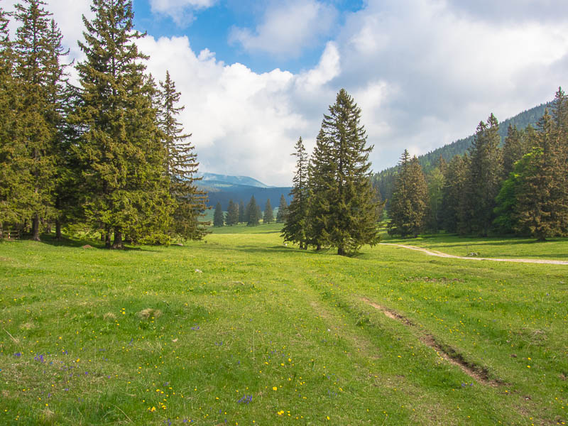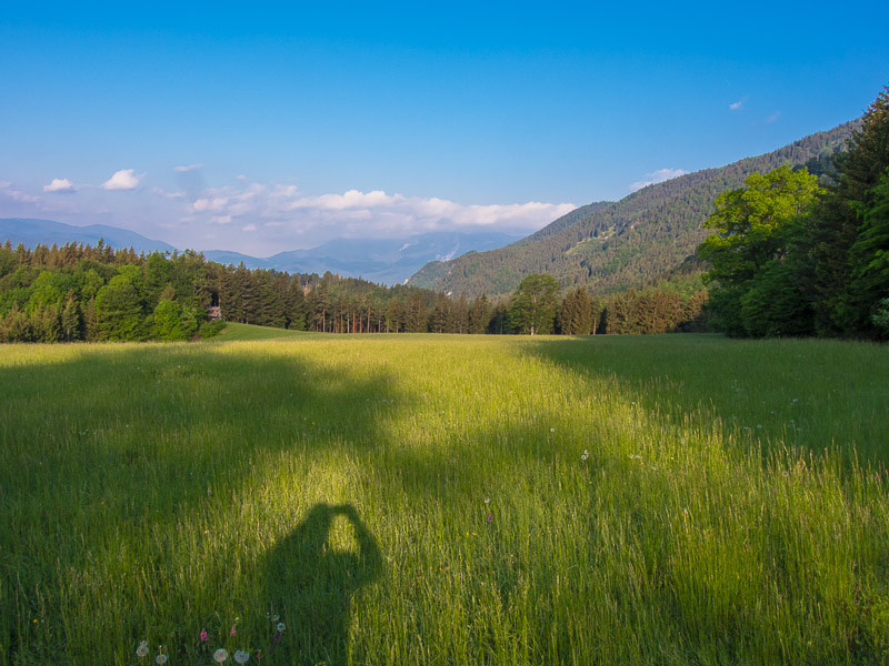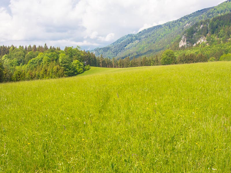 Diesmal gehe ich aber am Ende der Wiese den Weg weiter, den Berg entlang