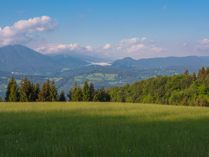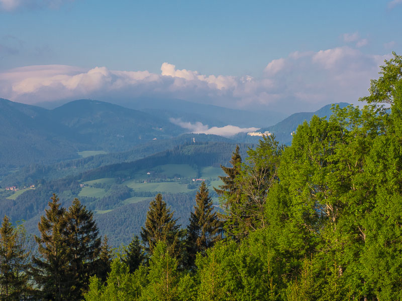 Drüben beim Semmering liegt Nebel. Könnte sein, dass der vom Mürztal herüberschwappt, so genau sehe ich das aber nicht.