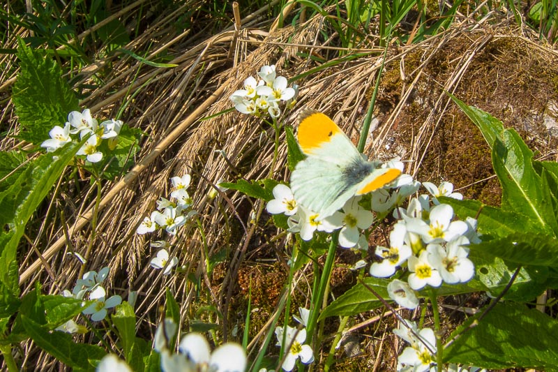 Am Gipfelhang zum Suarüssel ein Aurorafalter (Anthocharis cardamines) auf einer Alpen - Gänsekresse (Arabis alpina) - vielen Dank Nikolaus Künzle für die Bestimmung!.