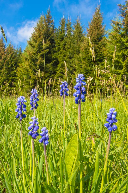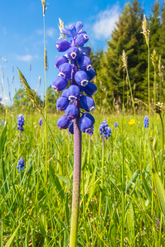 Weinbergs - Traubenhyazinthen (Muscari neglectum) auf einer Wiese etwas weiter unten.