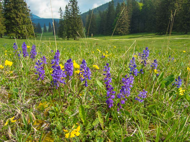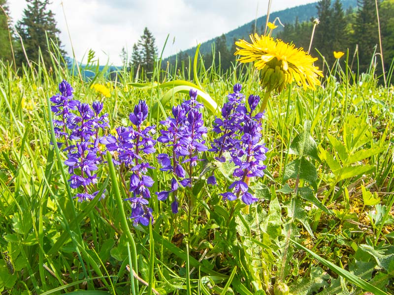 Zurück auf der Bodenwiese, auf der ich eine ganz kleine Runde drehe. Gewöhnliche Kreuzblume (Polygala vulgaris).