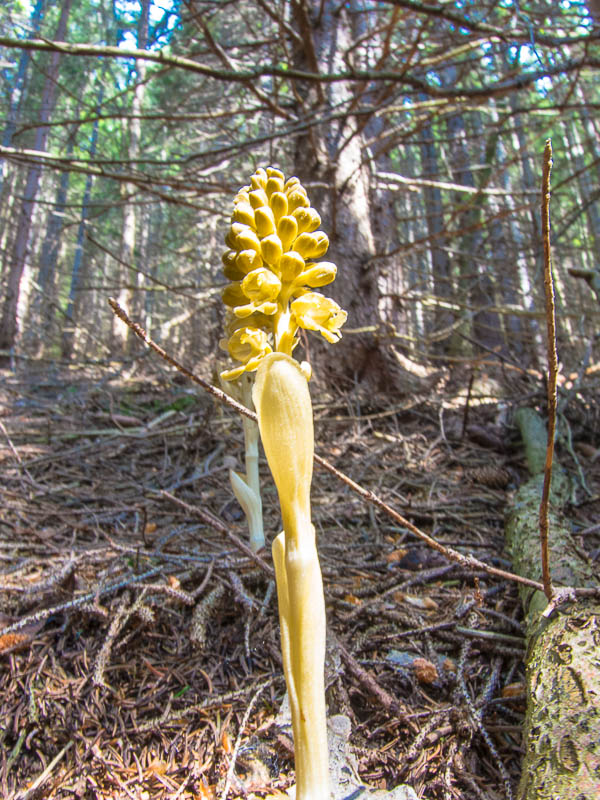 Beim Abstieg durch steilen Wald treffe ich auf diese Vogelnestwurz (Neottia nidus-avis).