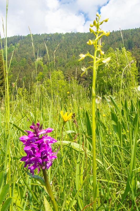 ... und das sehr ähnliche Schwertblättrige Waldvöglein (Cephalanthera longifolia) - die Blätter sind anders. Ich bin zurück auf der Gahnshauswiese.