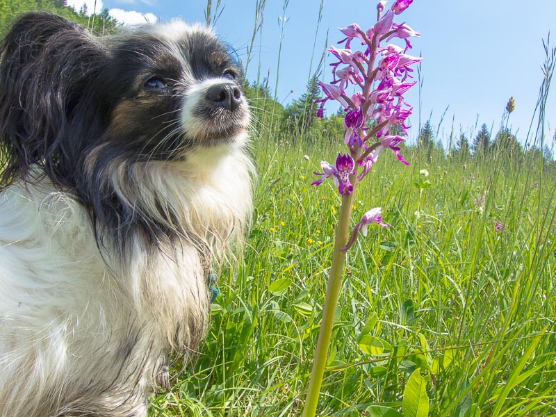Ein erstes Bild eines Kleinen Knabenkrauts (Orchis morio) ist aber schon bei diesem Licht möglich.