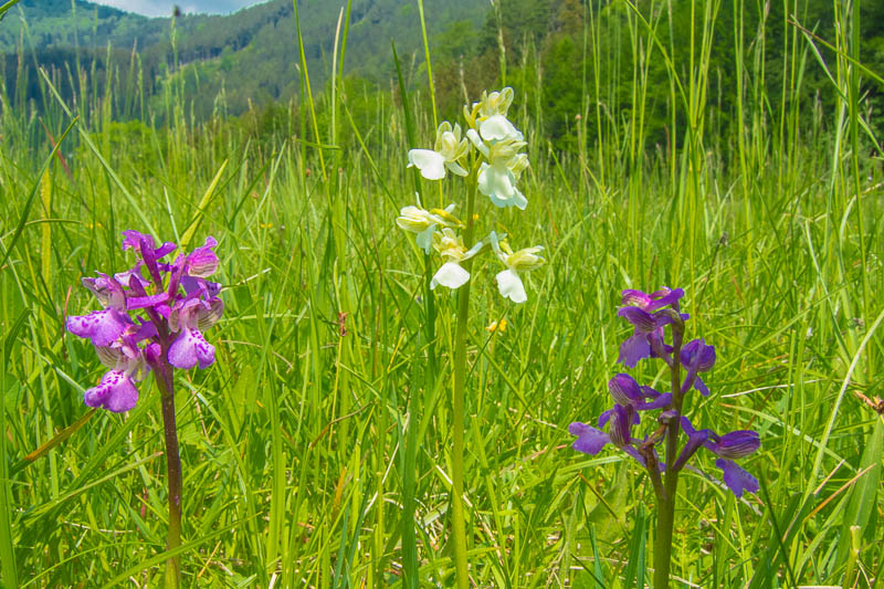 Auf der Gahnshauswiese wachsen tausende Exemplare des Kleinen Knabenkrauts (Orchis morio) in unterschiedlichsten Farbvarianten - hier ziemlich hell.