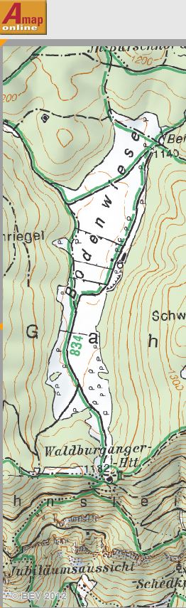 ... Bodenwiese, mit einer Ausdehnung von 97 Hektar die größte Almwiese Niederösterreichs. Sie zieht sich von hier (Luftlinie) knapp 3 km fast eben nach Norden.