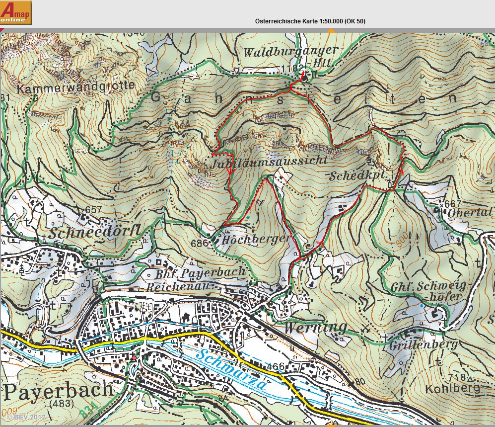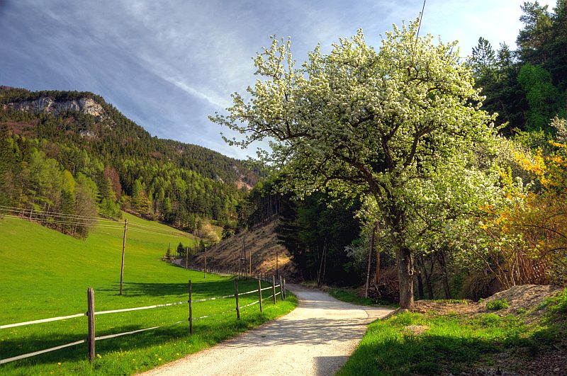 Da ich mein Mountainbike heute nach Gloggnitz zum Service bringe, nütze ich den schönen Tag und fahre gleich weiter nach Payerbach, von wo ich eine Vormittagswanderung zur Bodenwiese mache.