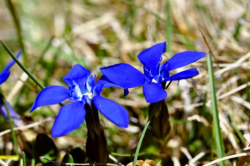 Auch wenn das Gras noch braun ist: schon strecken erste Frühlingsenziane ihre Köpfe heraus.