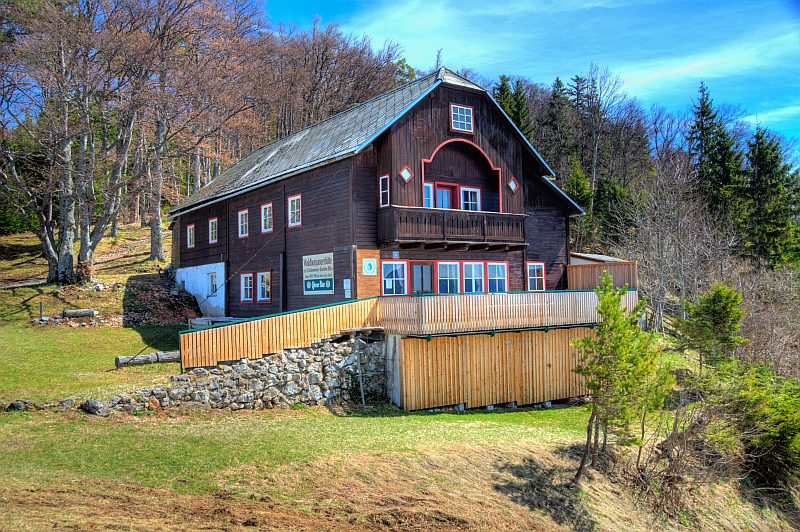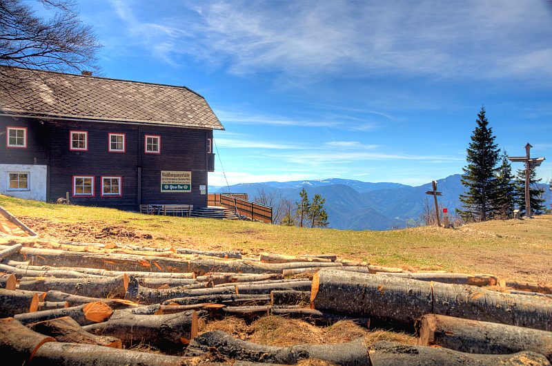 Die Waldburg - Angerhütte mit dem Blick nach Süden zum Hochwechsel.