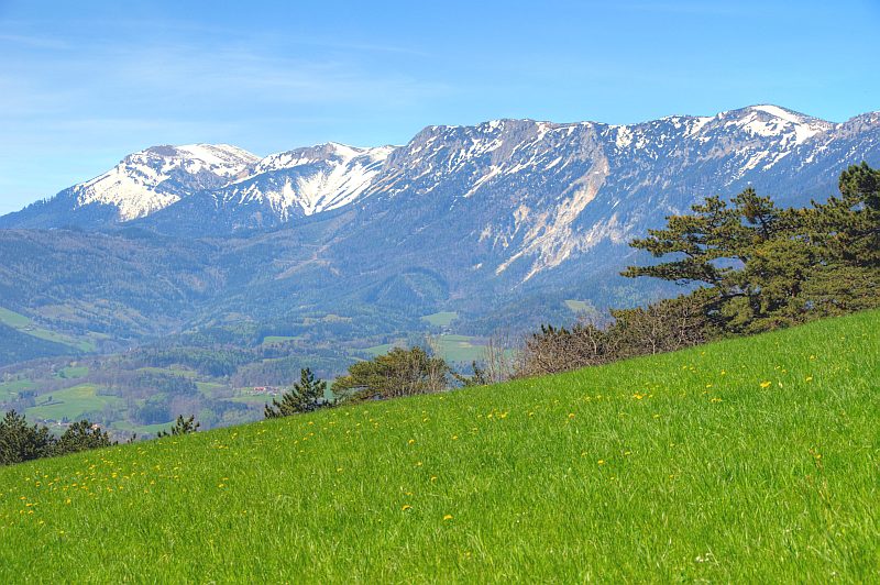 Beim Hochberger wende ich mich nach links, um zu meinem Auto zu kommen. Letzter Blick zur Rax.