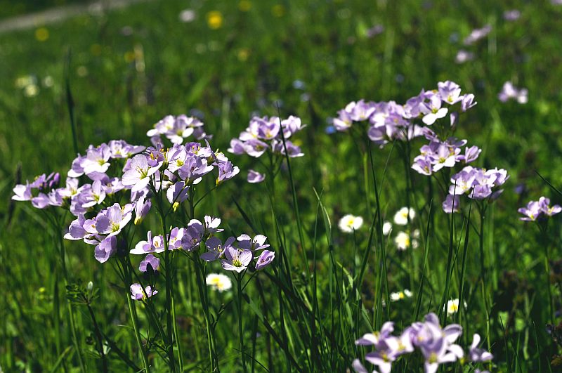Beim obersten Bauernhof blüht in der Wiese das Wiesen - Schaumkraut (Cardamine pratensis).