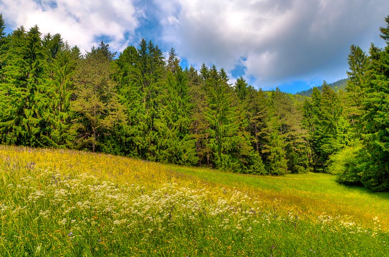 Ich steige nun durch den Wald zum Saurüssel auf, unterwegs nochmals Wiesen.