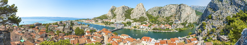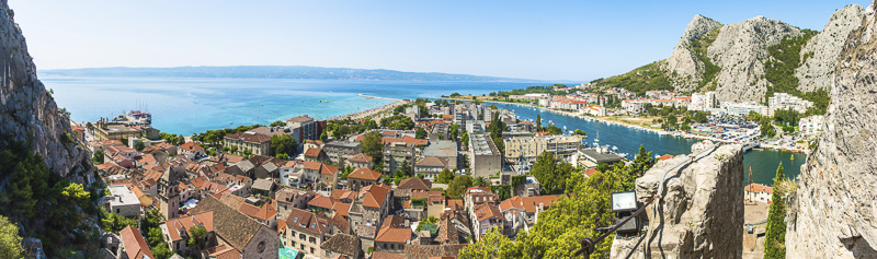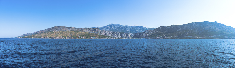 Panorama der dalmatinischen Küste bei Omis. Hierher oder ins Bild klicken für eine größere Darstellung.