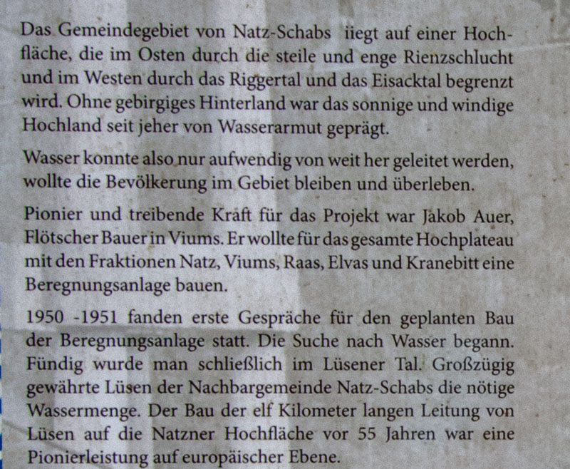 Die Mädels sind noch einmal zu einem Stadtbummel nach Meran gefahren. Nach einem faulen Vormittag am Pool breche ich zu einer Wanderung am Natz - Plateau auf. Diesmal will ich mir die Rienz - Schlucht anschauen.