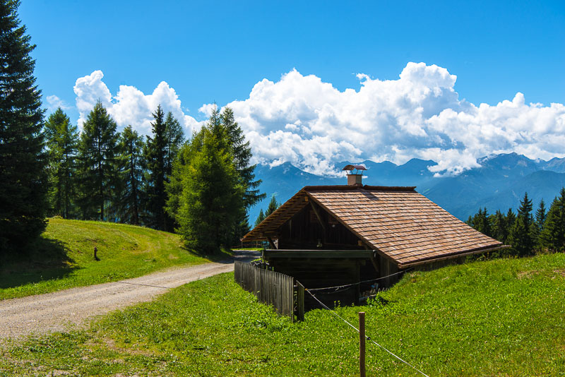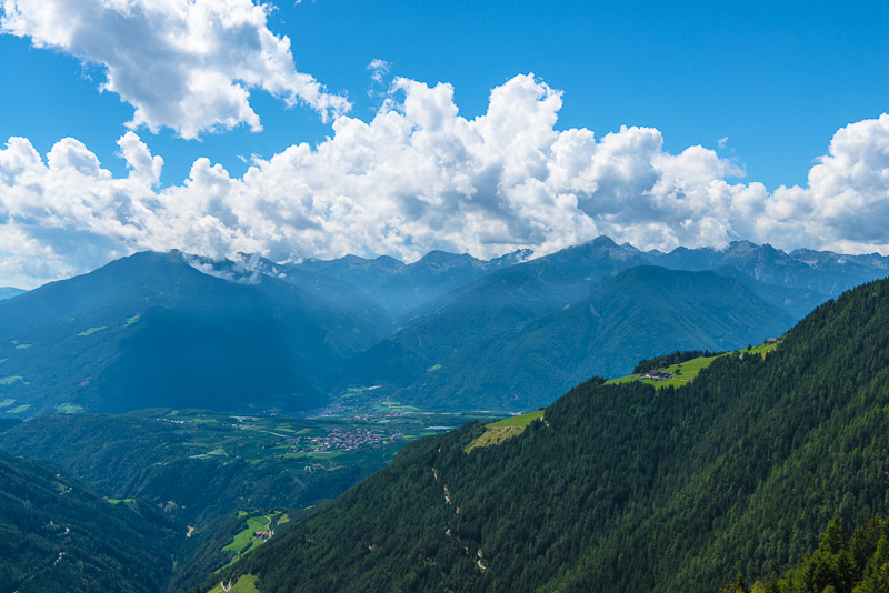 Today, we dreive down to Brixen and then up again into the eastward orientated side valley ending with the small village of Lüsen. From there, a road leads up to the western part of the Lüsner, a huge mountain pasture, then further to Rodeneck and from there down to Mühlbach, the neighbouring village of Natz/Schabs. A round drive, so-to-speak.