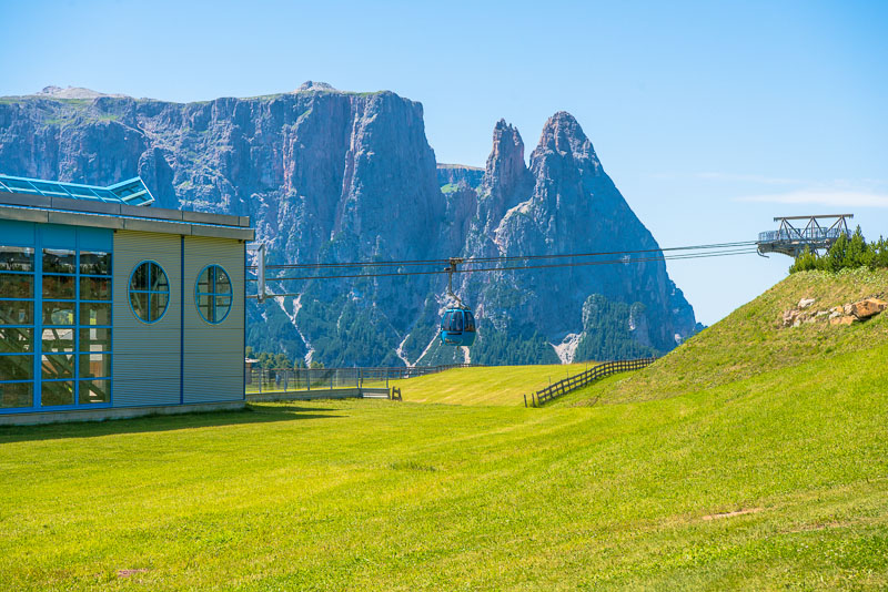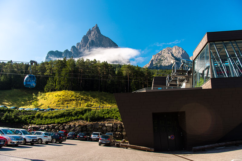 After a drive down to Brixen, down the Eisack valley and back up to Kastelruth and Seis, we arrived at the funicular. The toll road only can be used by the public till 9 a.m.