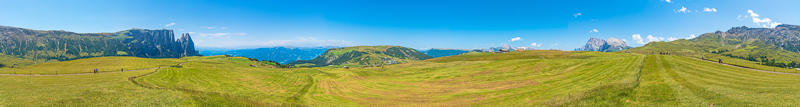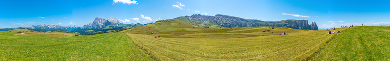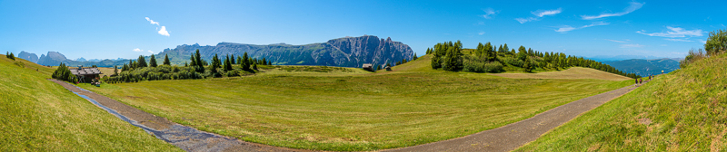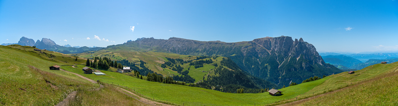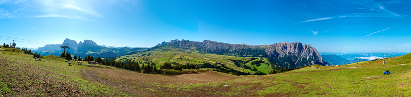 Panoramic picture from Puflatsch (Dosser Schwaige) to the Seiser Alm. Click here or into the picture for a larger display.