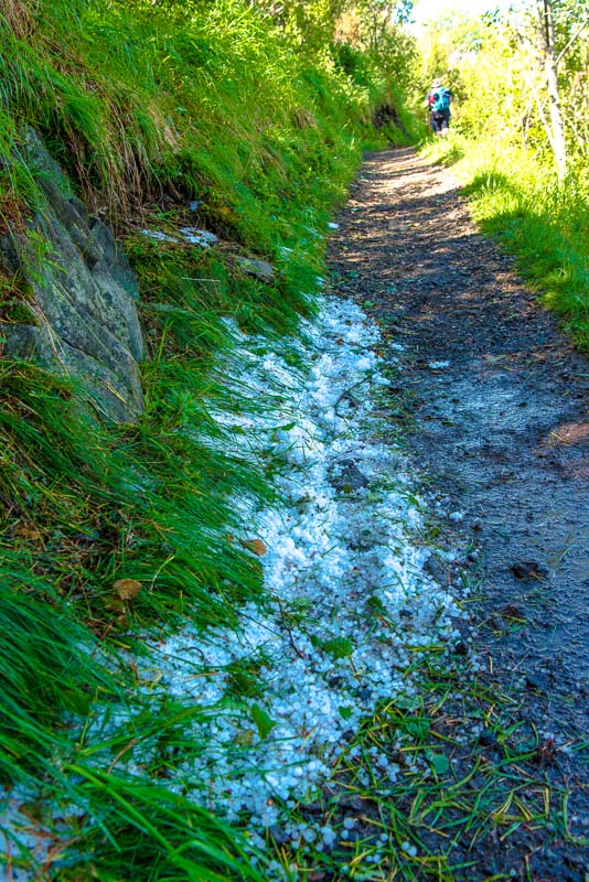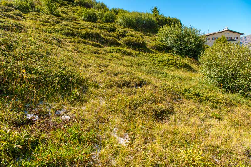 We cross the Puflatsch plateau in a large curve, back to the funicular down to Seis. Yesterday´s thunderstorm has left its traces.