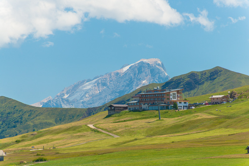 Panorama lift summit station with one of the many hotels up here, with the Geisler group in behind.