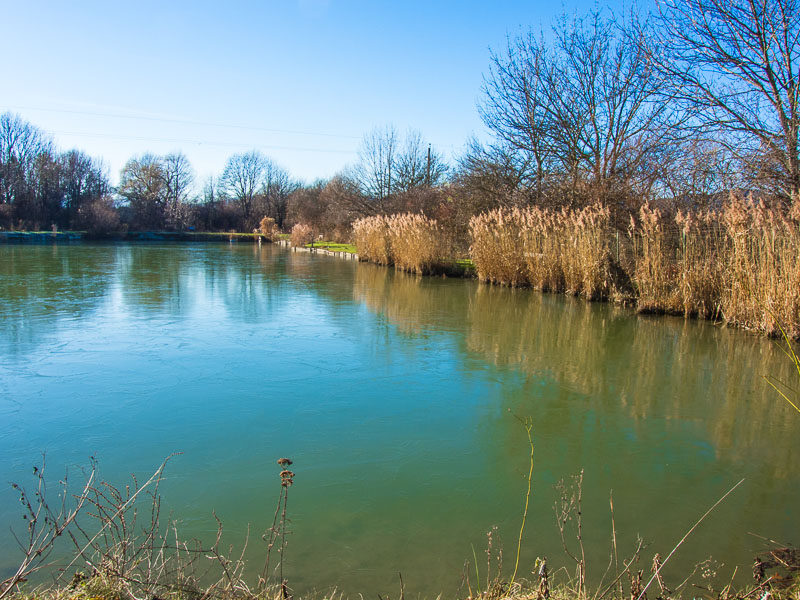 The pond half way to Saubersdorf is covered with a thin layer of ioce.