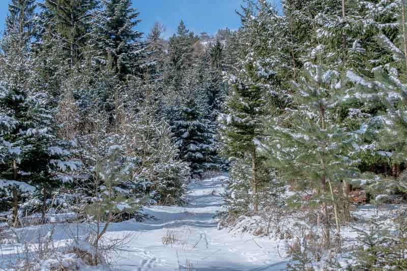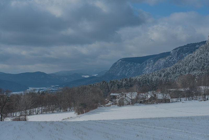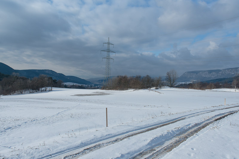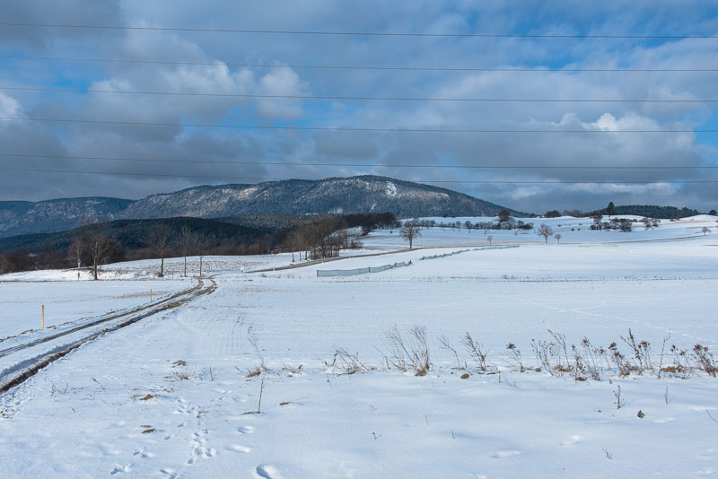 Gestern hat es ein wenig geschneit, in Winzendorf ist der Schnee aber schon wieder weggetaut. Nicht so weiter oben, und so fahre ich heute Richtung Muthmannsdorf und Dreistetten.