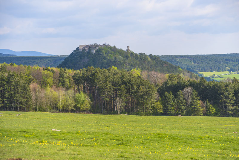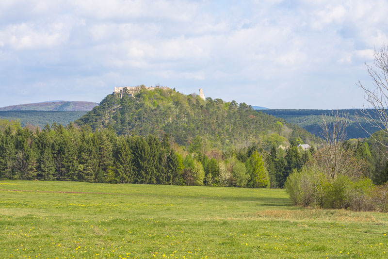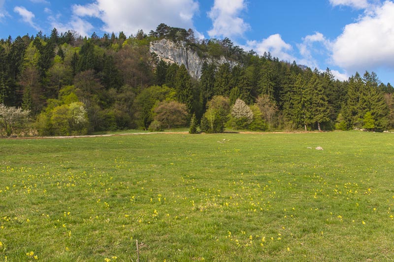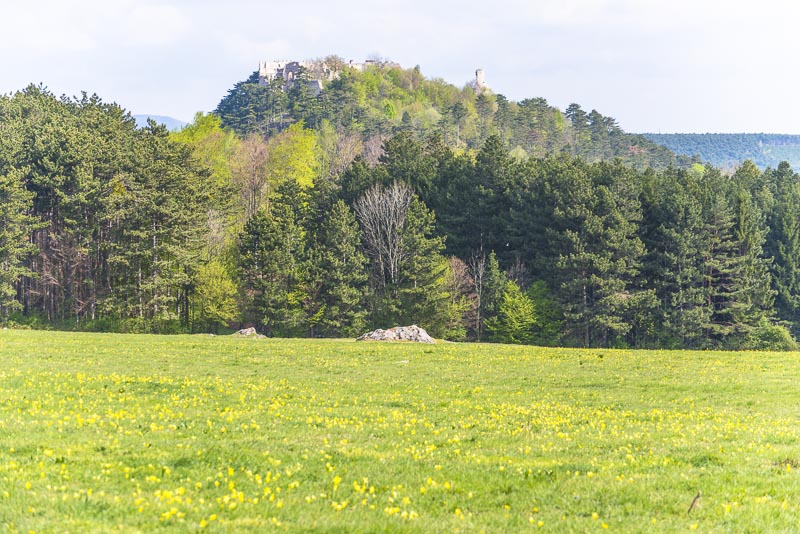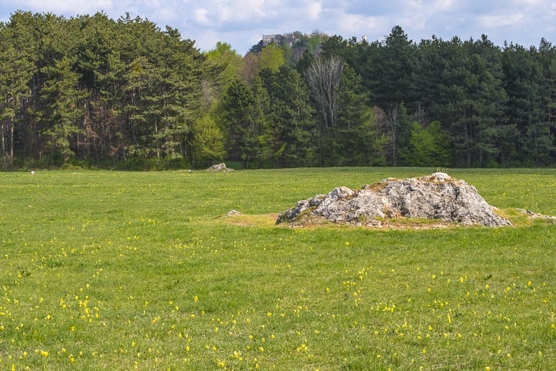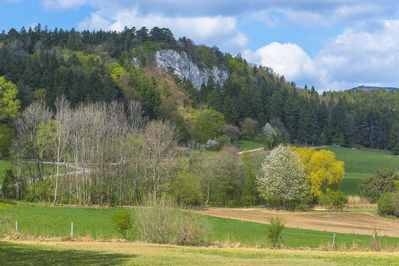 Der Felsen bei der Einhornhöhle, der letzte Ausläufer der Hohen Wand nach Nordosten.