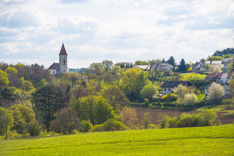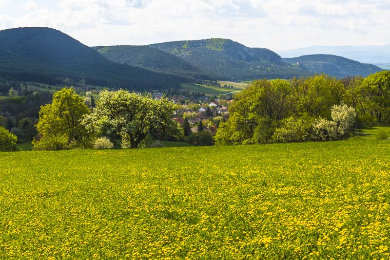 Blick über Muthmannsdorf zu den Fischauer Bergen