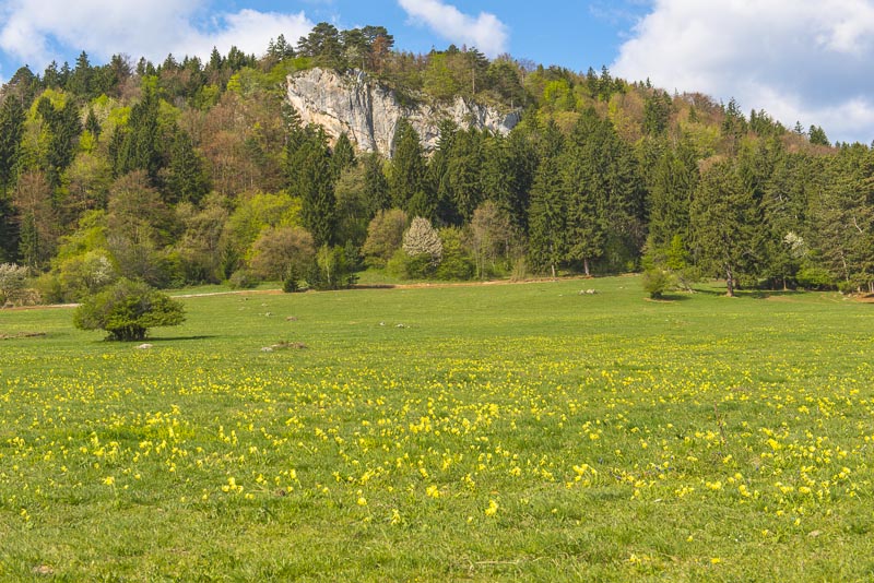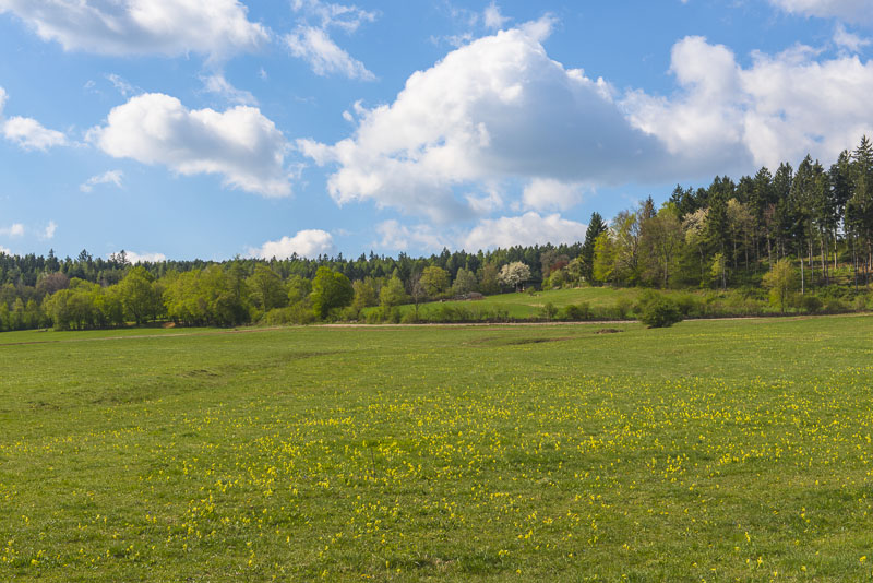 Auf dieser Wiese blühen tausende Schlüsselblumen.