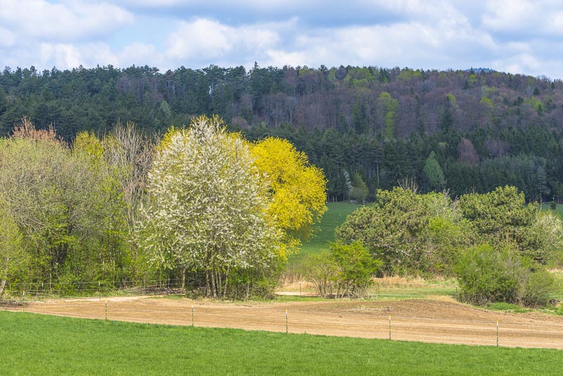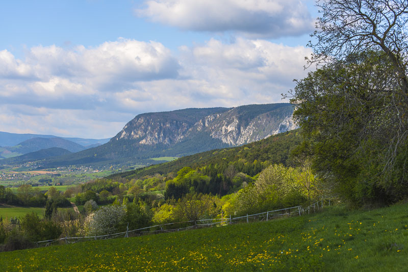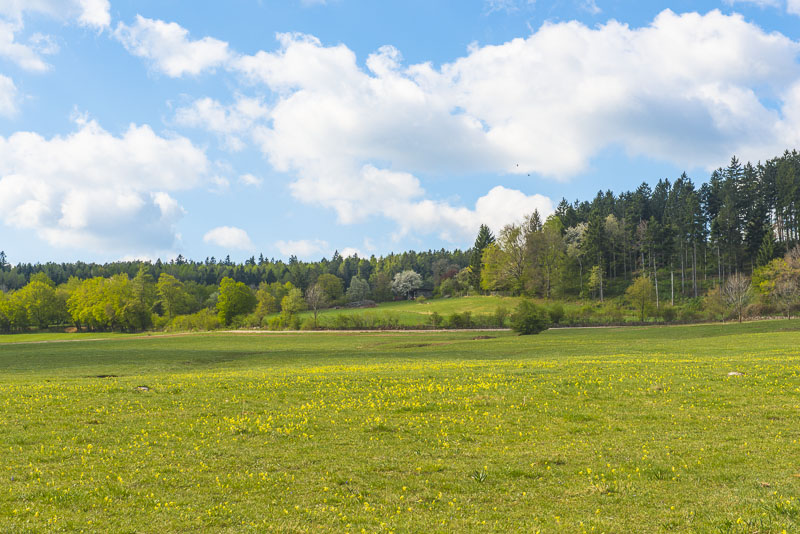 Ich muss aus Dreistetten etwas abholen und benutze den sonnigen Tag für eine kleine Wanderung auf die Wiesen rund um den Ort. Leider ist es sehr windig, und die Wolken ziehen extrem schnell, sodass Licht und Schatten sich ständig ändern.
