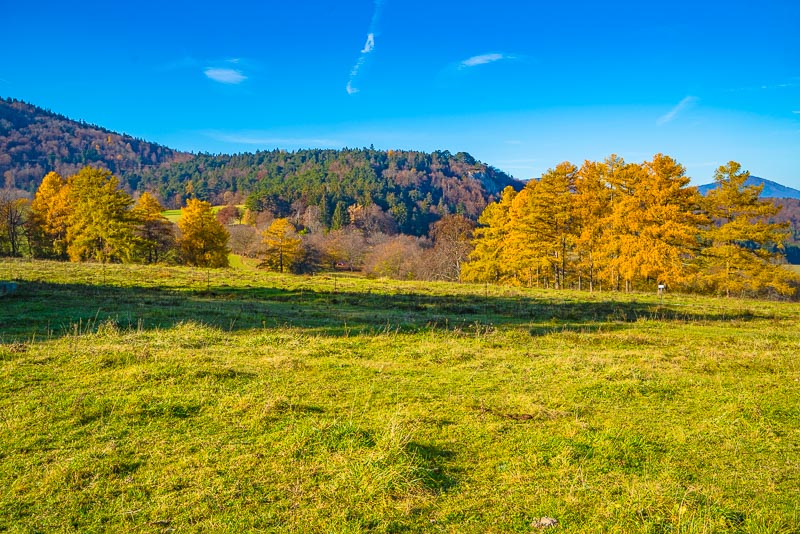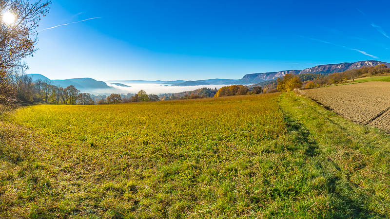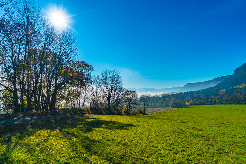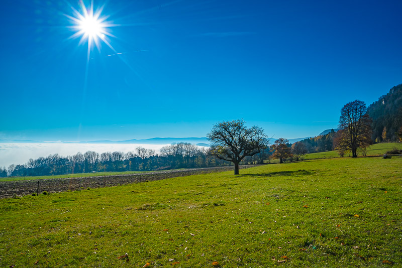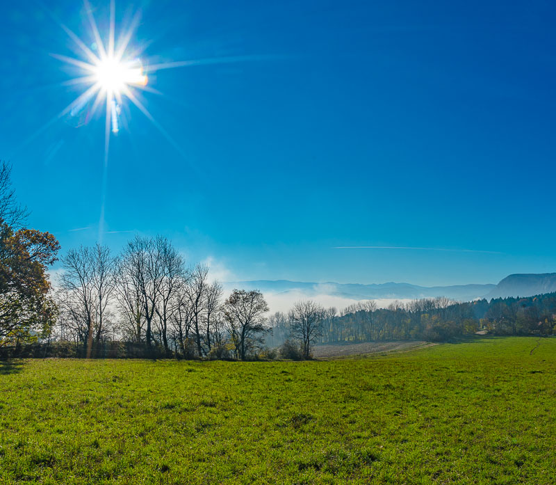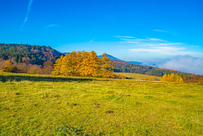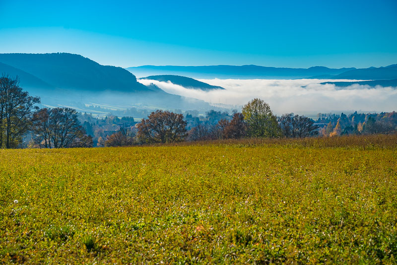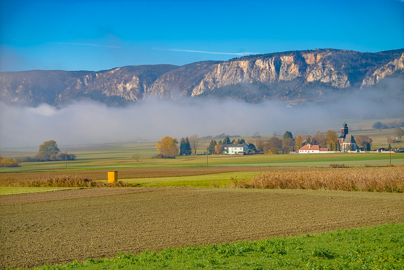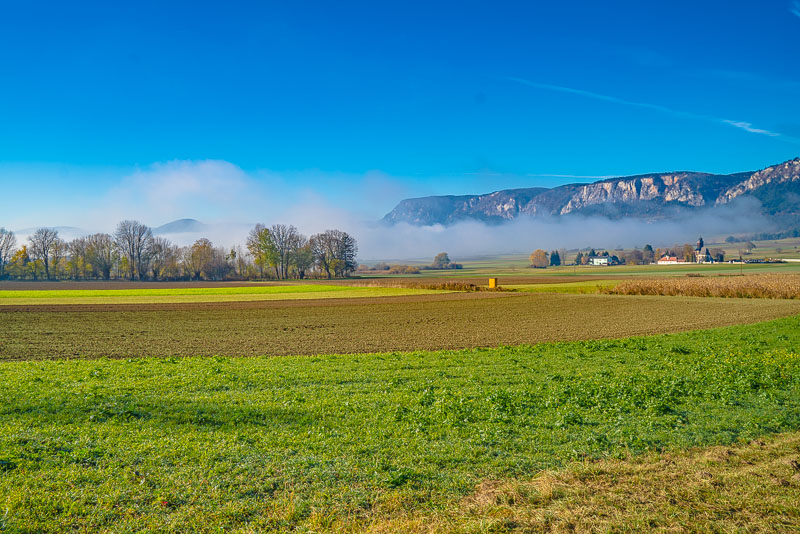 Fleeing the ground mist - a short walk from Dreistetten first heading for Hohe Wand, then branched off to the grassland and fields near the Frankenhof, and back via the Frankenhof and the lower path.