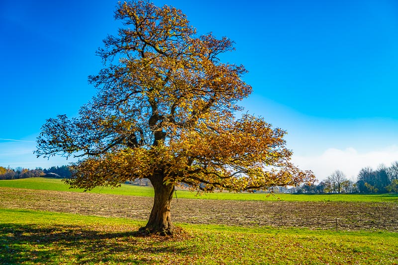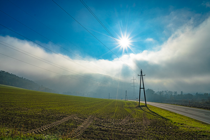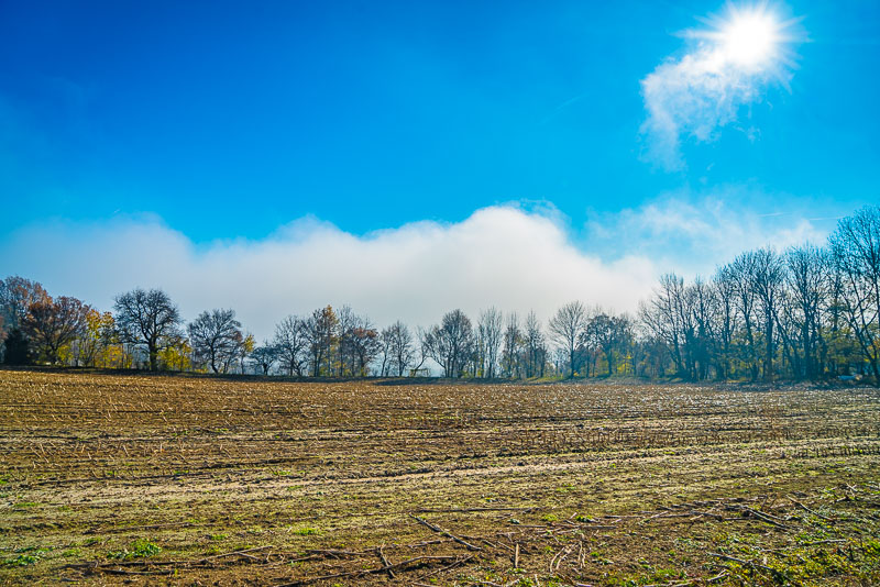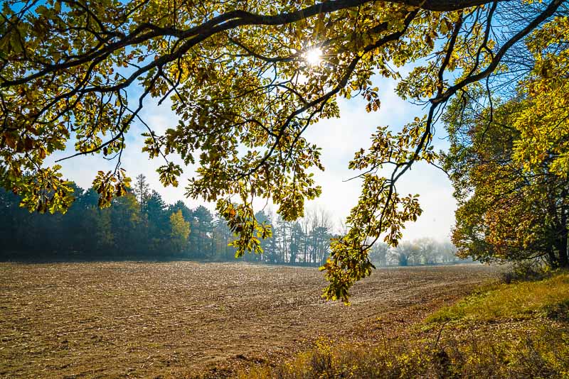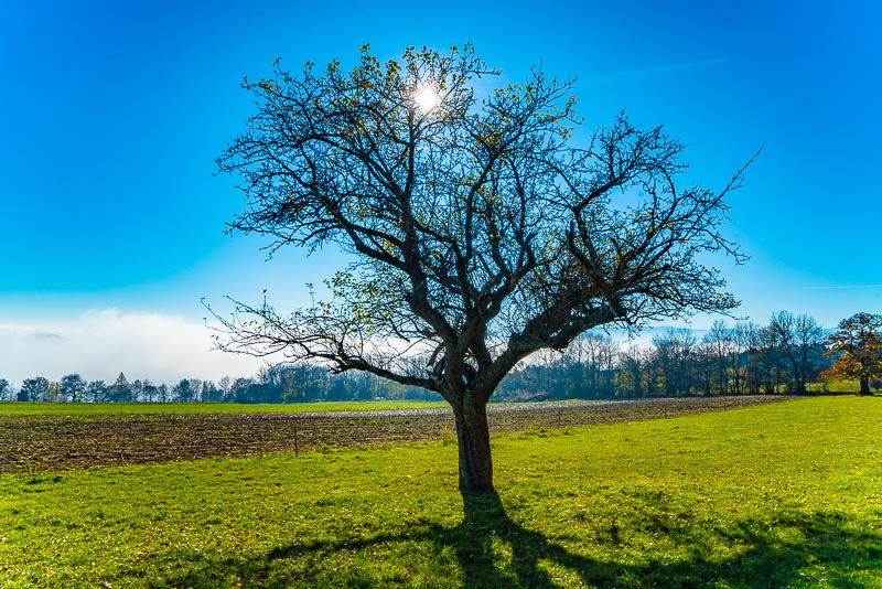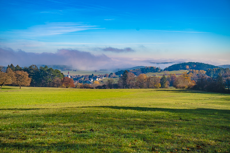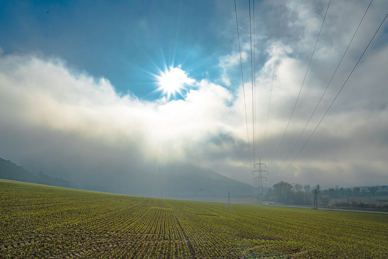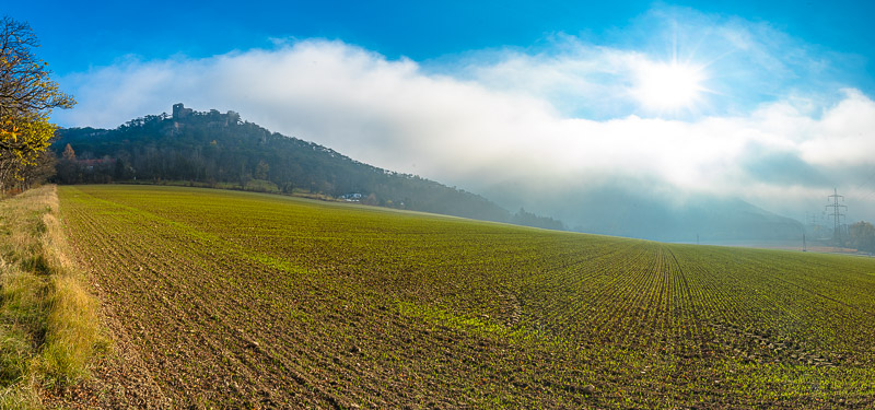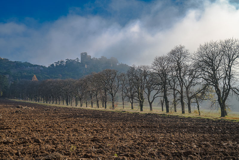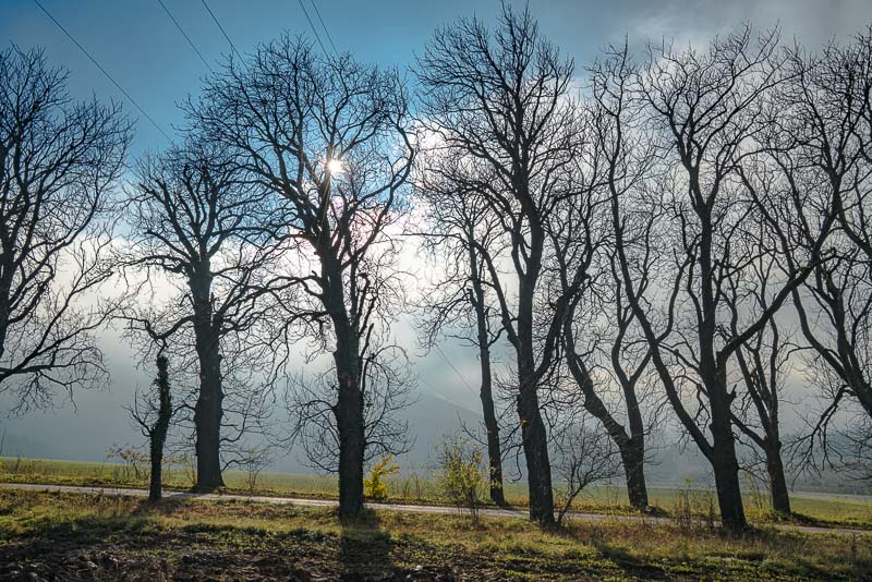 On the drive home we have to stop at the horse chestnut alley to admire the view to ruin Emmerberg. Here, the mist starts.