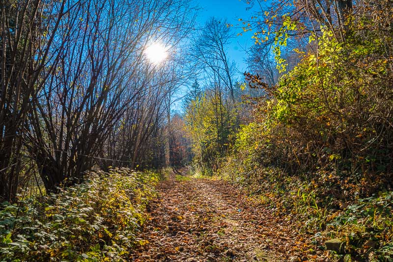 Shortly after the Teichmühle we leave the mist, the upper (Northern) part of the Neue Welt is in the sun..