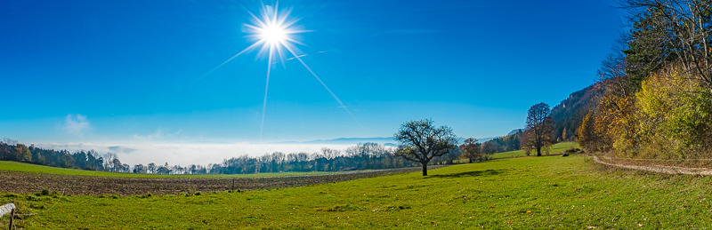 Panoramic picture of the pasture above Dreistetten. Click here or into the picture for a larger display.