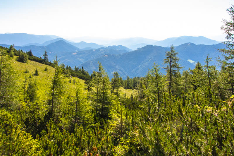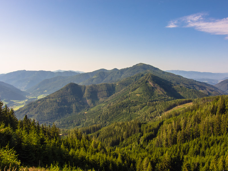 View to Southwest, o the pointed summit of the Eisenerzer Reichenstein.