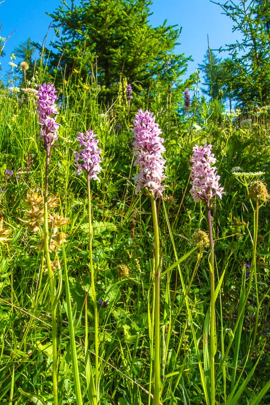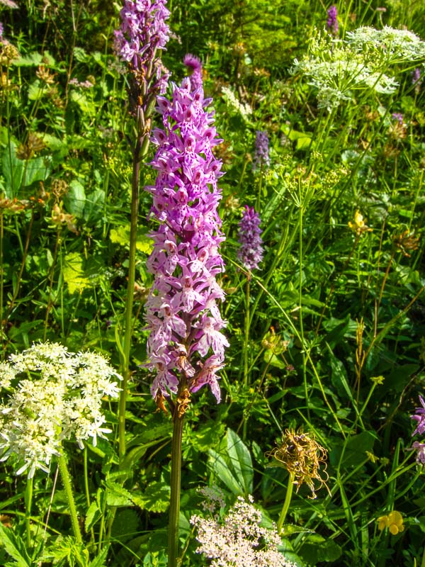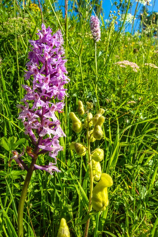 Common spotted orchid (Dactylorhiza fuchsii) and yellow wolfsbane (Aconitum lycoctonum).