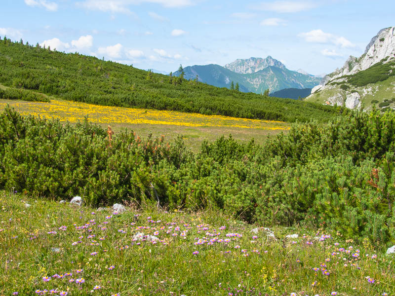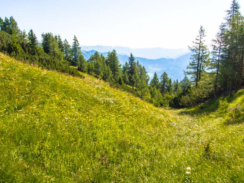 Another short leg walking, but here we turn back. The summit of the Hochturm isn´t that interesting for us. Another view to the Sonnschienalm.