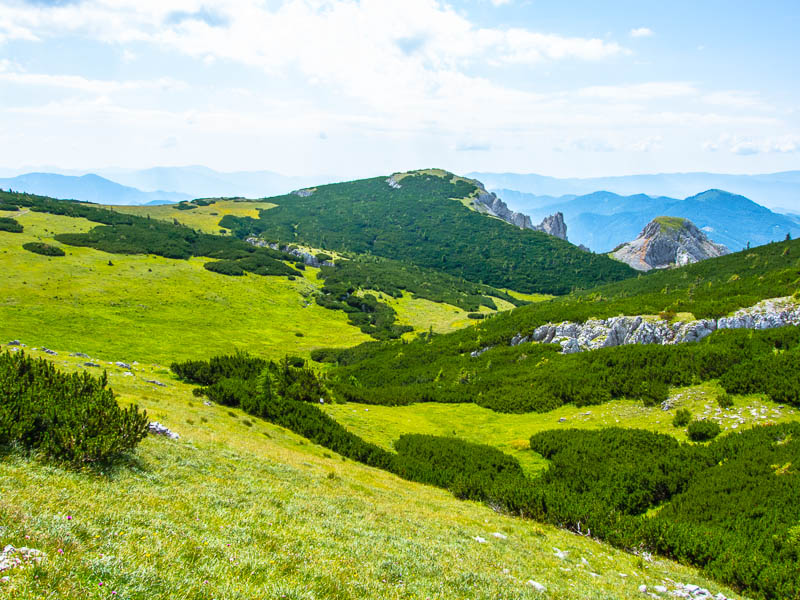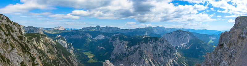Panoramic view to the Hochschwab massive. Click here or into the picture for a larger display.